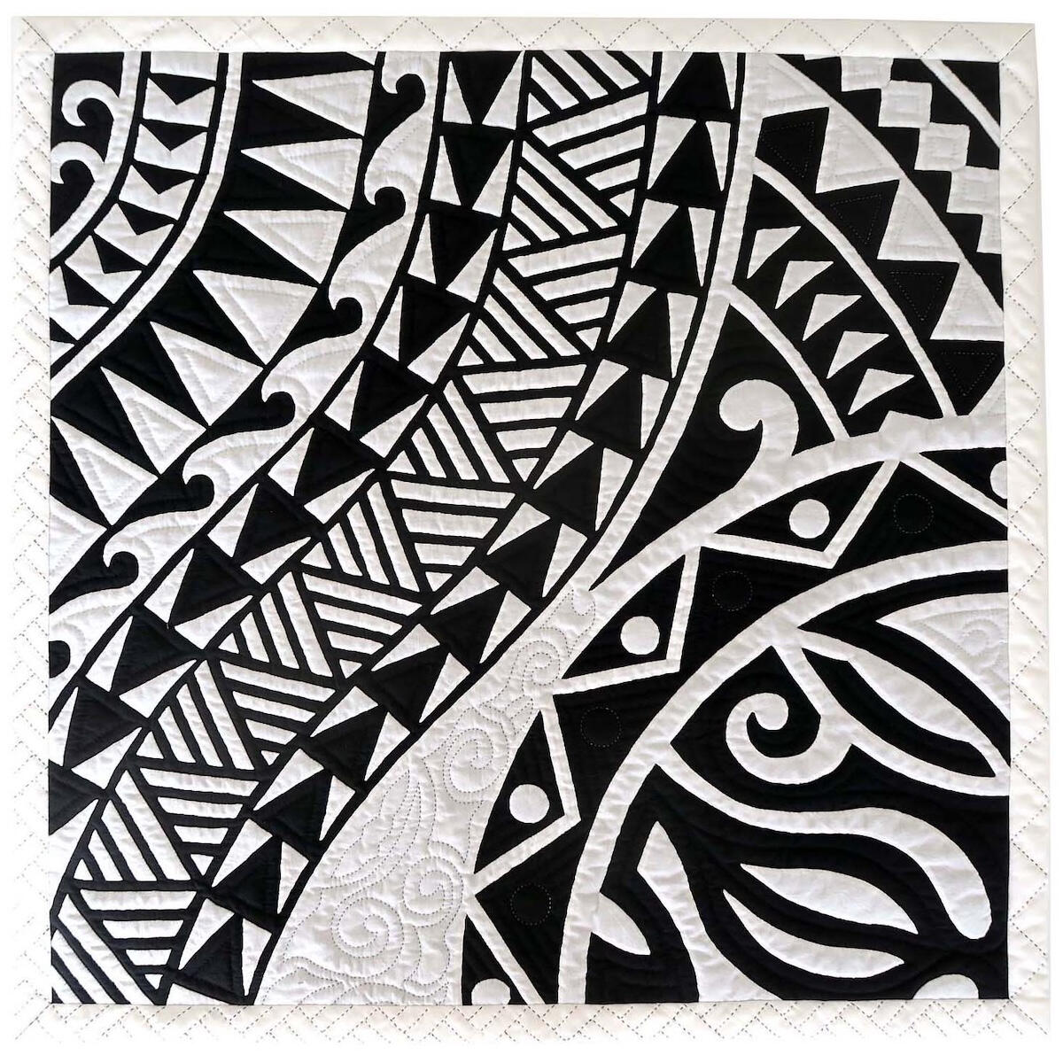 また、ブログ等で見せる“宇宙一の大好物”である鰻への深い愛情や、多忙な日々をユーモアたっぷりに綴るチャーミングな人柄も、彼女の作品に温かな人間味を与えているに違いありません。本イベントでは、マエダ・メグさんが長年のキャリアと豊かな旅、そしてデザイナーとしての鋭い視点と、キルターとしての確かな手仕事が融合した、ハワイの息遣いを感じる美しい世界を展示いたします。