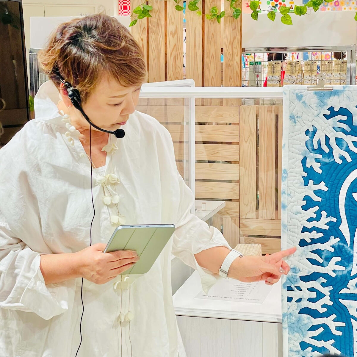 その活動は国内に留まらず、アメリカのキルトアカデミーでの講師や、カリフォルニアで開催される大規模なキルトイベント「ROAD2CA」での講習など、世界的なキルトシーンでも非常に高い評価を得ています。また、これまでに『ハワイに咲くキルト』や最新著『Meg's Hawaiian Quilt』など数多くの著書を出版し、その独創的なパターンは国内外のファンを魅了して止みません。彼女が主宰するクラスは月に15を数え、技術のみならずデザインや色彩の哲学を余すことなく伝える情熱的な指導も、彼女の大きな魅力の一つです。