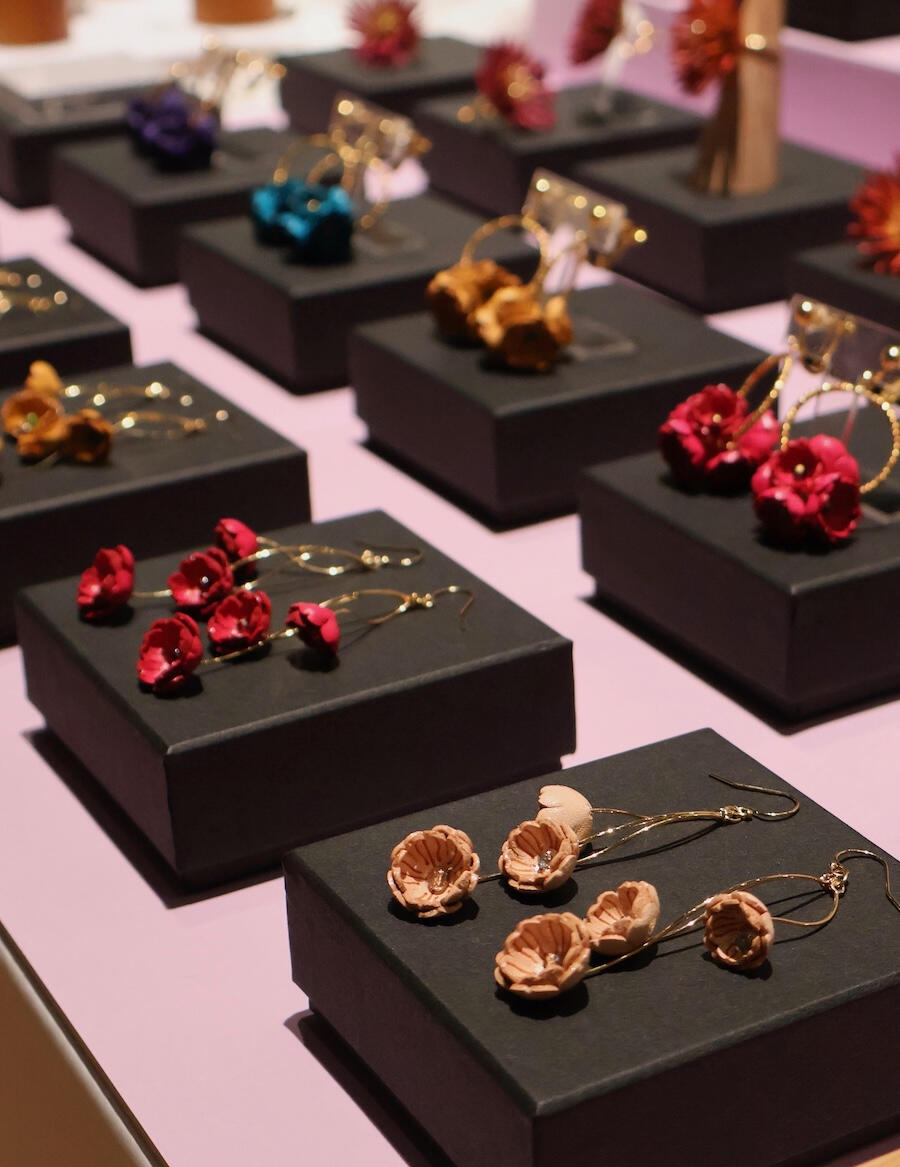 彼女が生み出す軽やかで柔軟なレザーアートは、従来の「革製品」のイメージを一変させるほどの多様な表情を見せてくれます。