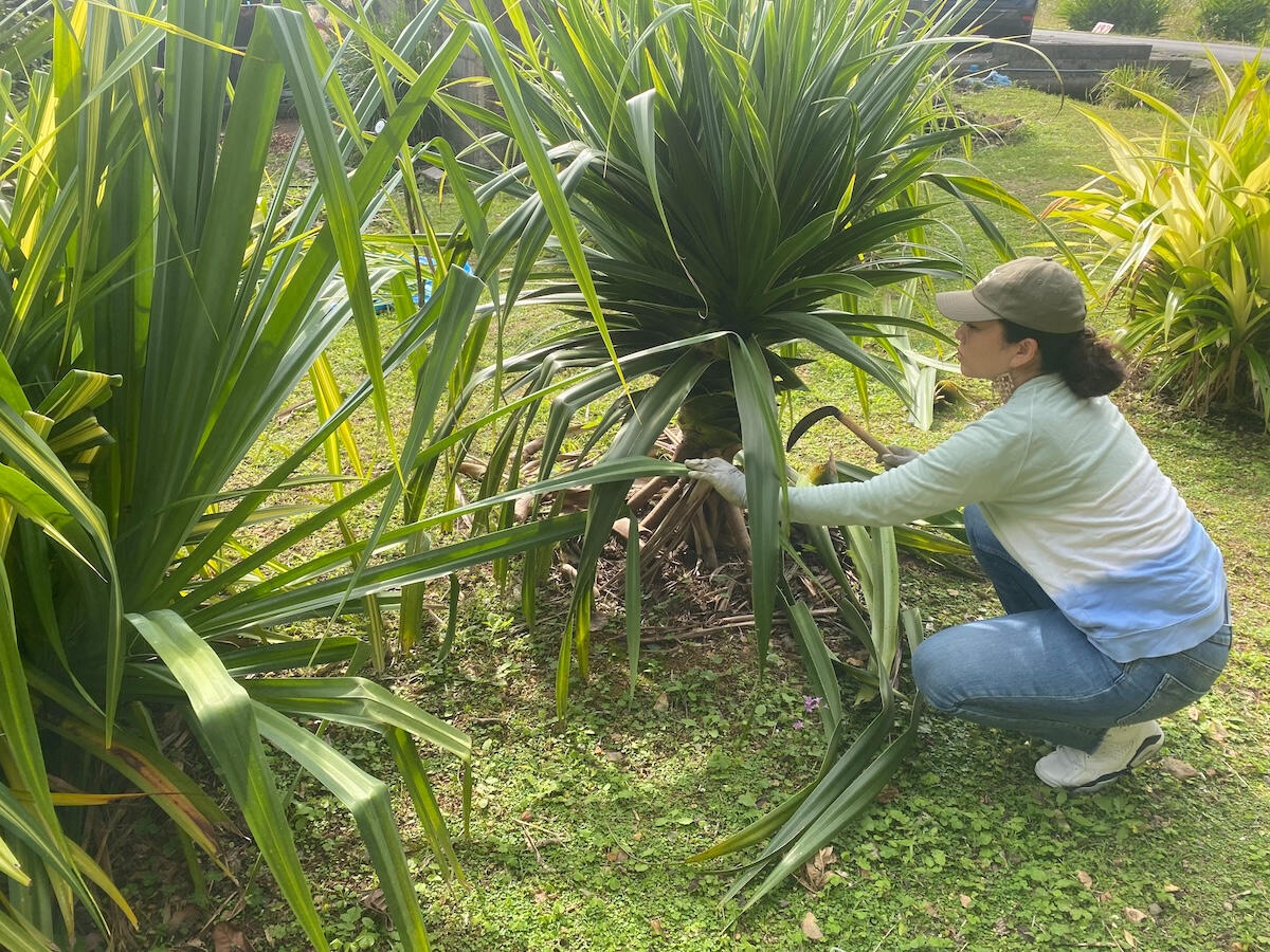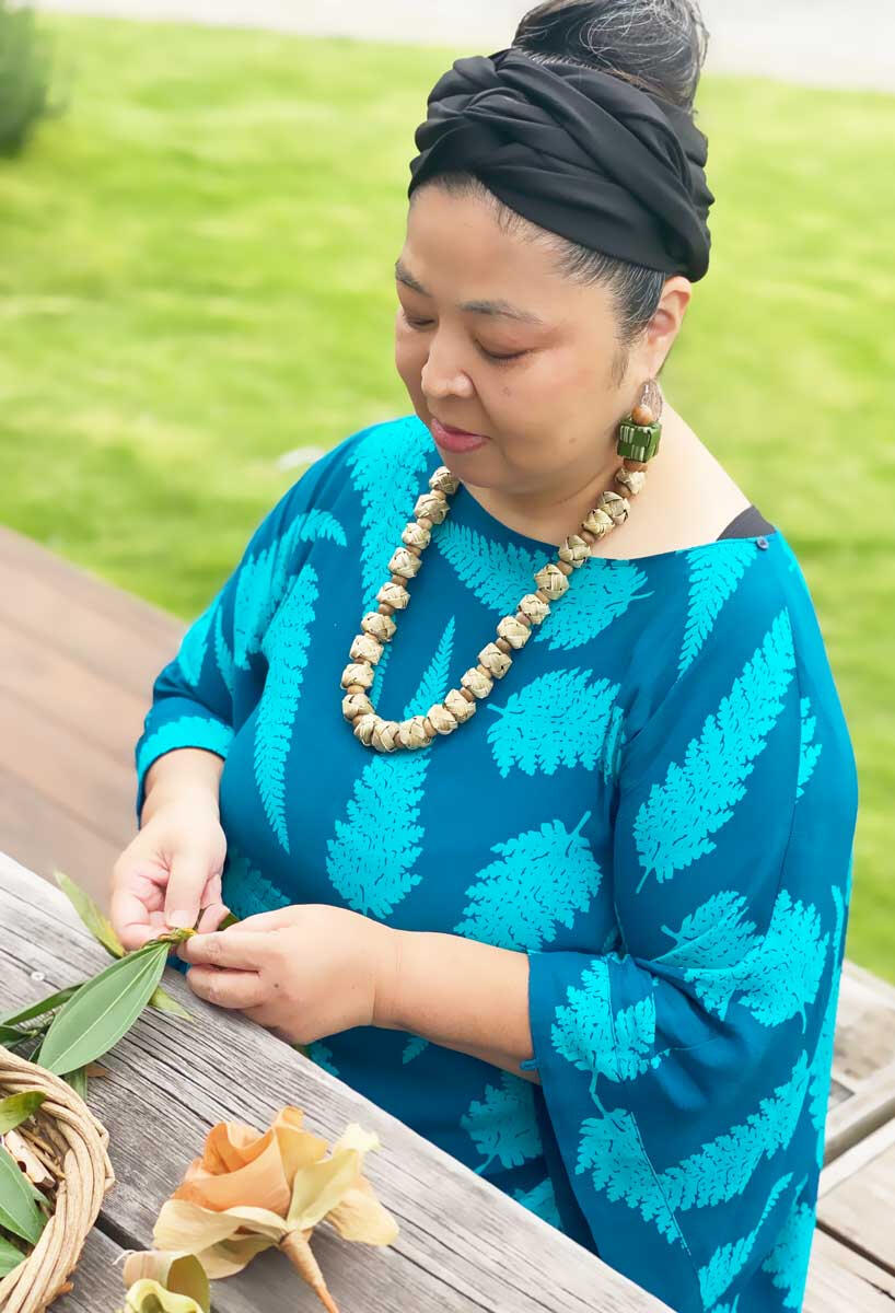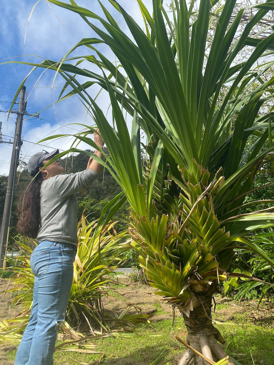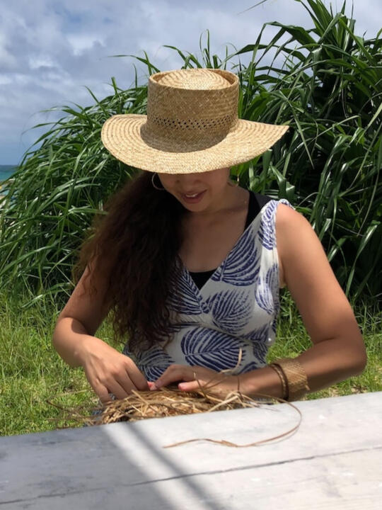 ハワイの伝統的な編み細工「ラウハラ」に魅せられ、その深い精神性とともに技術を継承し続けるウィーバー(編む人)、伊波陽子さん。
