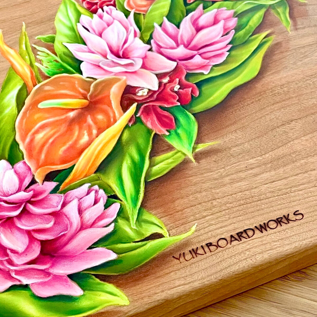 この20年に近い活動実績は目を見張るものがあります。YUKI BOARD WORKSを主宰し、国内外の店舗看板や壁画制作を多数手掛ける傍ら、ハワイを代表するシェーブアイス店でのアート展開、ハワイオリジナル石鹸ブランドの商品パッケージを多数ラインナップ、さらには国内航空会社とのコラボレーションなど、その才能は多方面で高く評価されています。また、著書『はじめてみよう!楽しいハワイアンチョークアート』の出版や、オアフ島の公立学校でのアートクラス担当など、普及活動を通し次世代への技術の継承にも情熱を注いでいます。