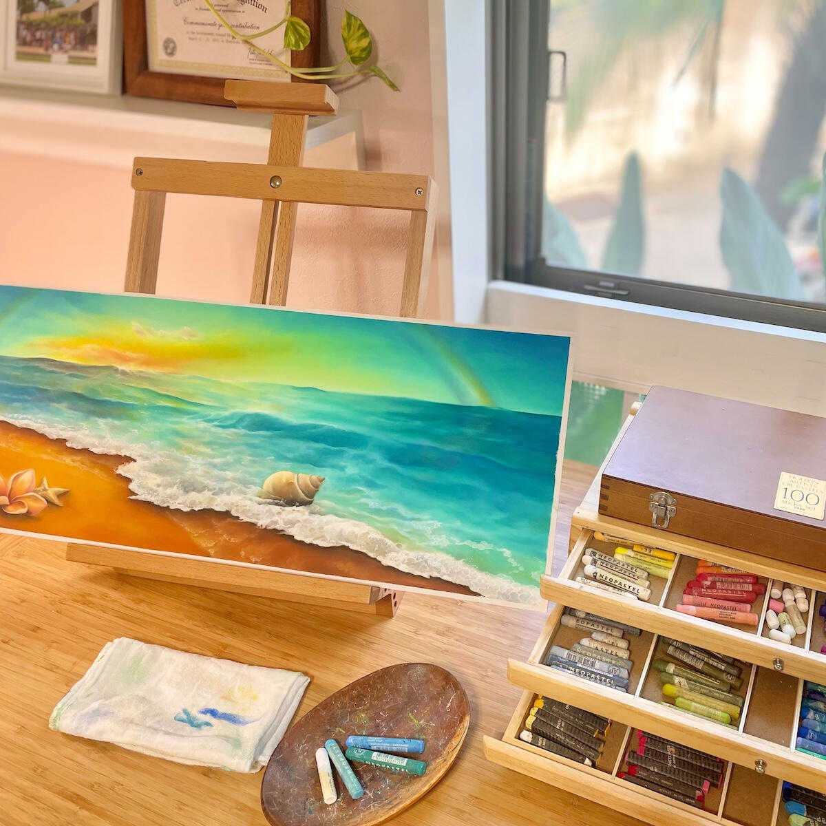 以来、日本発祥の画材であるオイルパステルを用い、その魅力をハワイ、そして世界へと発信し続けています。