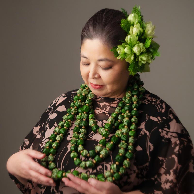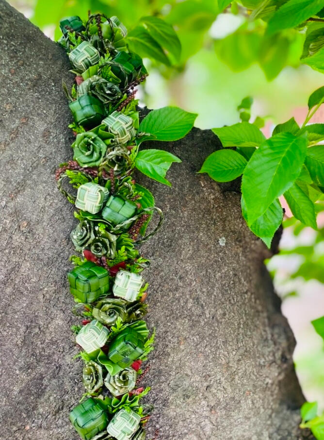 彼女の作品の魅力は、ハワイの伝統的なレイメイキングの手法をベースにしながらも、フラワーデザイナーとしての洗練された視点が融合している点にあります。Instagramに公開されている作品群からも、繊細に編み込まれた葉の質感や、植物の息吹がそのまま形になったような生命力、そして観る者を惹きつける気品を感じ取ることができます。それはまさに、自然への敬意と受け手の幸せを願う「編み込まれた祈りの芸術」と言えるでしょう。