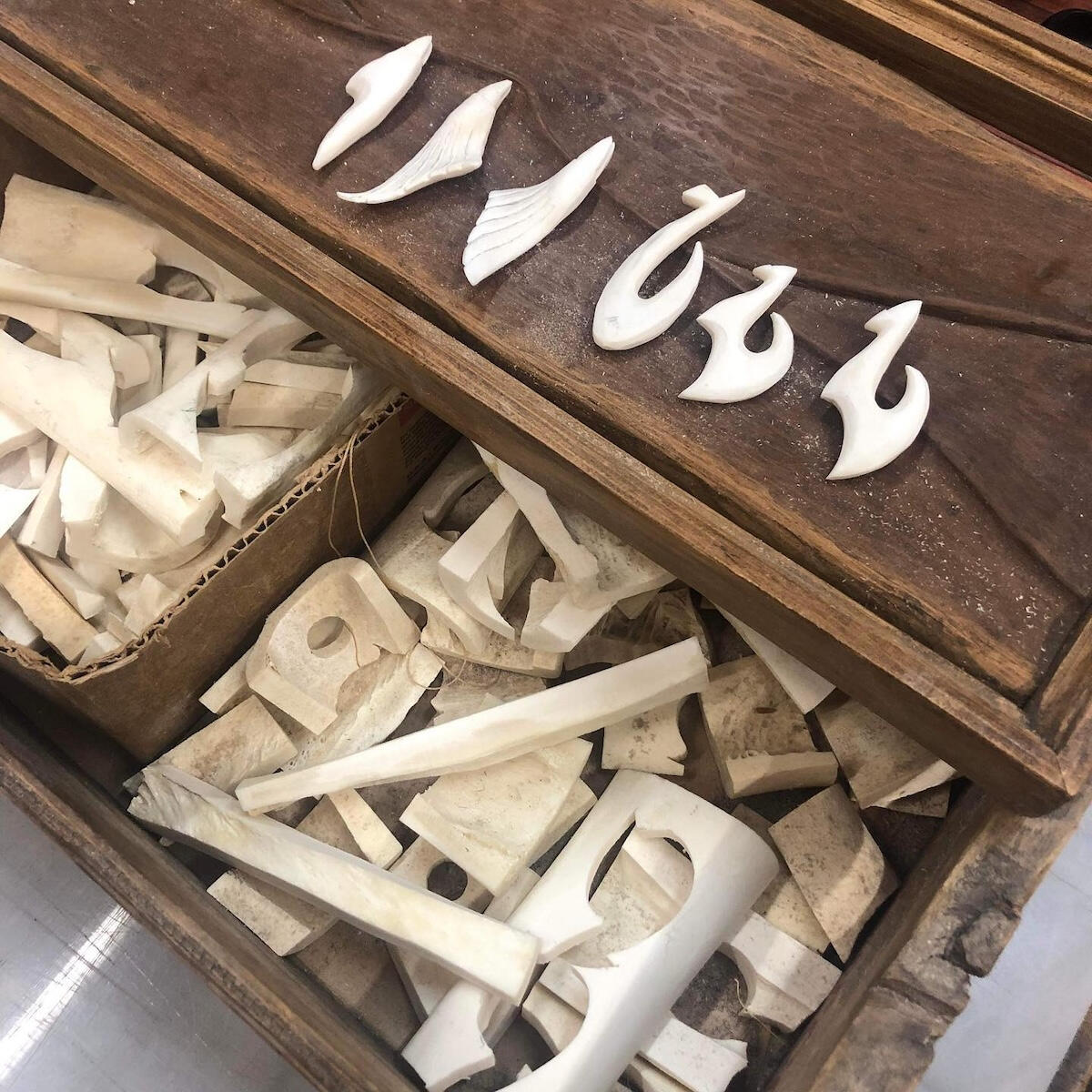 ハンセンさんの作品の真骨頂は、素材への深い敬意と、一切の妥協を許さない手仕事の美しさにあります。かつてボーンカービングの第一人者であった故ジョージ・マイケル氏の意志を継ぎ、その確かな技術と洗練されたデザインを現代に伝えています。