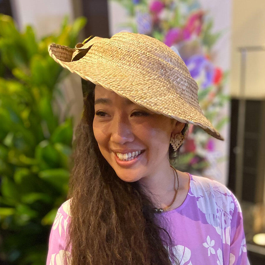 ハワイの伝統的な編み細工「ラウハラ」に魅せられ、その深い精神性とともに技術を継承し続けるウィーバー(編む人)、伊波陽子さん。